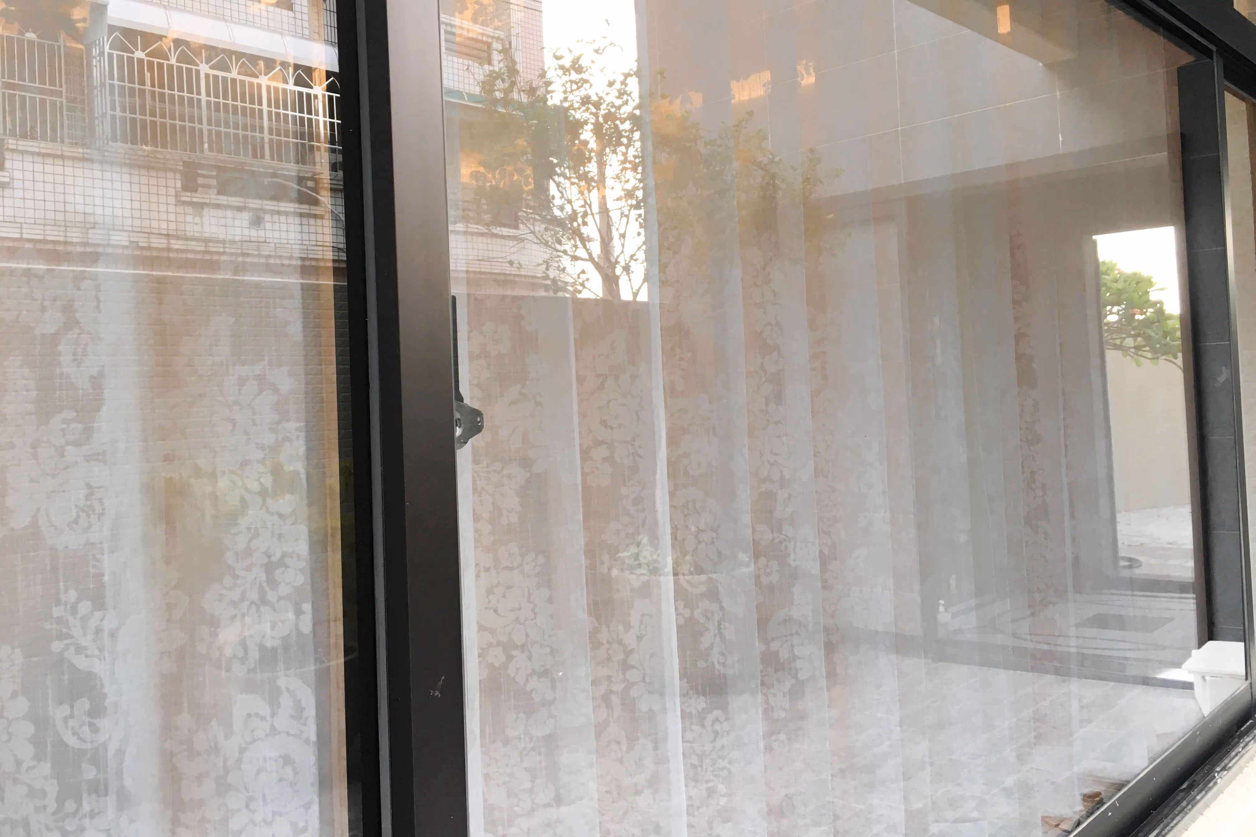 在彰化和美、台中北屯都有我們自己的展示空間,全花色的成品窗簾掛在落地窗前透著光的感覺超級美!也歡迎晚上來確認隱私遮蔽的效果。