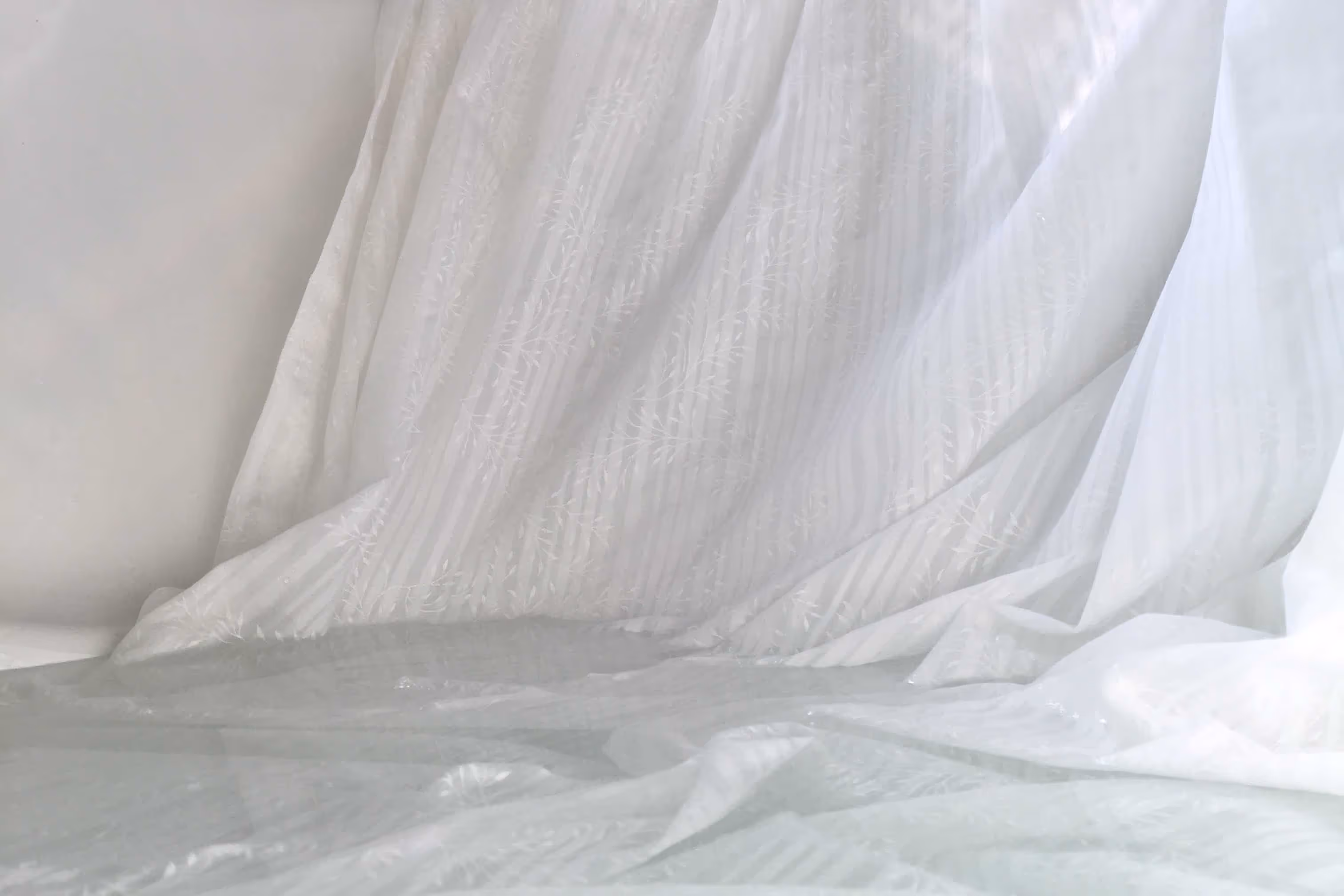小補充:市面上無接縫的紗幾乎都是中國製造,這類產品大多以100%人造纖維生產,手感/垂墜度/浪漫美感等,與我們生產的紗就會有很明顯的差異性。